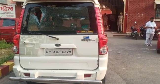 पत्थर लगने से गाड़ी का पिछला शीशा टूटा, अगले शीशे में भी आई दरार