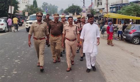 आज दिनांक 06.11-2022 को पुलिस अधीक्षक पीलीभीत, श्री दिनेश कुमार पी० के निर्देशन में जुलूस-ए-गौसिया व गंगा स्नान पर्व, शांति एवं क़ानून व्यवस्था के दृष्टिगत जनपद के समस्त राजपत्रित अधिकारी/प्रभारी निरीक्षक/थानाध्यक्ष/चौकी प्रभारी द्वारा अपने-अपने थाना/चौकी क्षेत्रों में सतर्क दृष्टि बनाए रखते हुए पैदल गश्त कर सुरक्षा व्यवस्था का जायजा लिया गया। पैदल गश्त के दौरान चौराहों, मार्केट, सार्वजनिक स्थानों आदि पर संदिग्ध व्यक्तियों/वाहनों/वस्तुओं की चेकिंग की गई एवं आमजन से संवाद स्थापित कर सुरक्षा का एहसास कराया गया।
